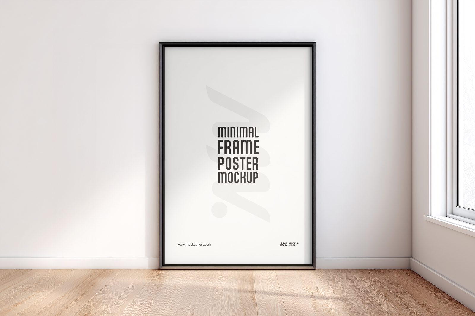 Free Wooden Poster Frame Mockup In Indoor Soft Light